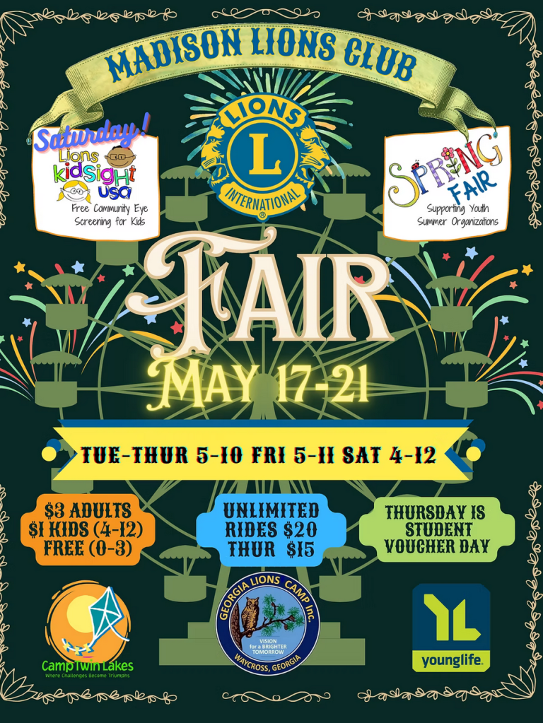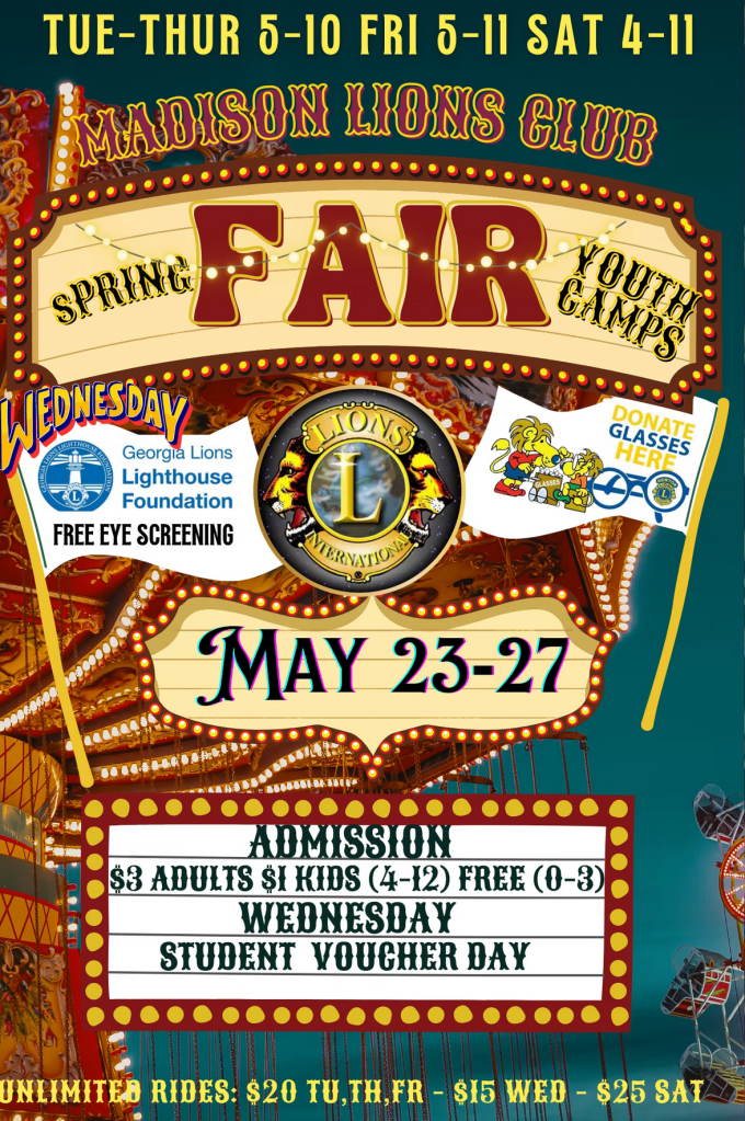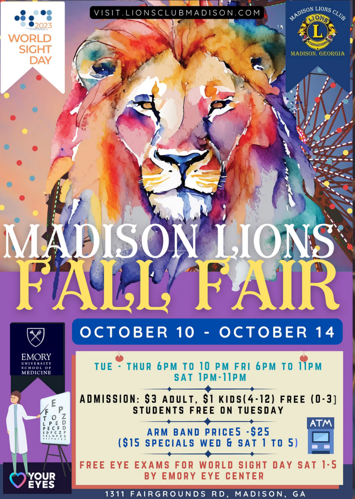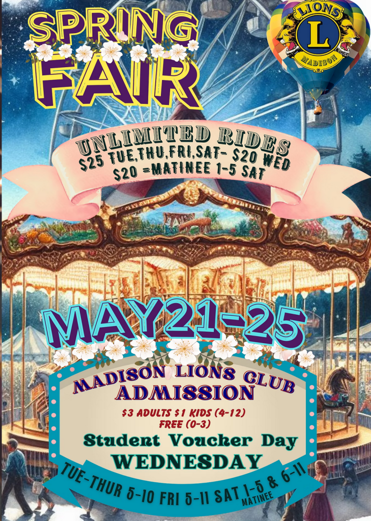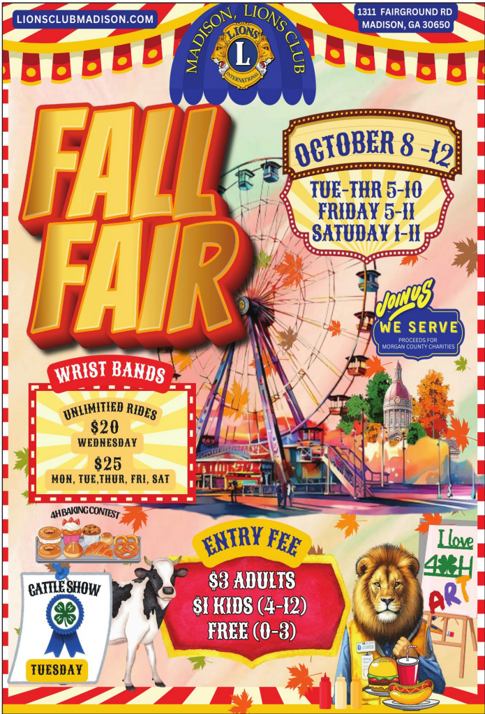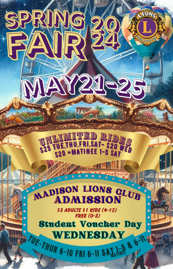 The 2026 Madison Lions Club Fair will be held October Wednesday 14- Saturday 17.
